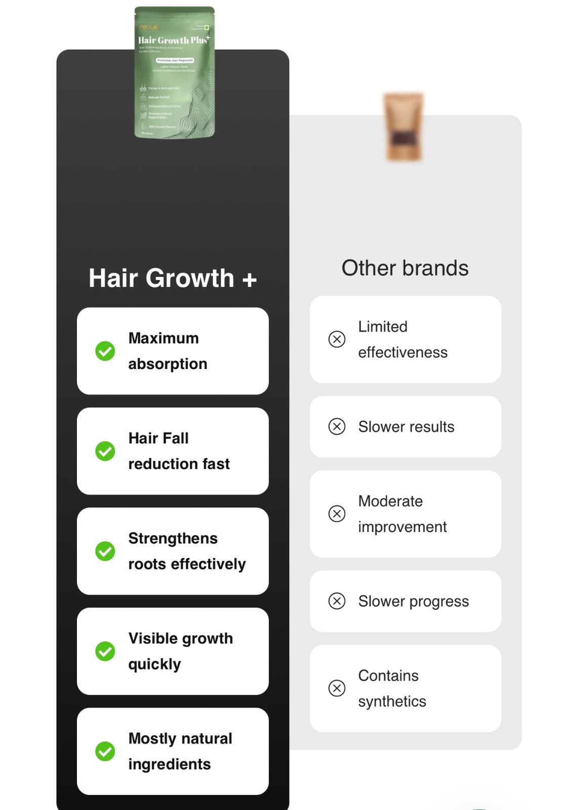 Hair Growth plus promotes thicker, stronger hair, reduces hair fall, enhances natural shine, and stimulates follicle regeneration for healthier hair growth, resulting in a fuller and more vibrant appearance.