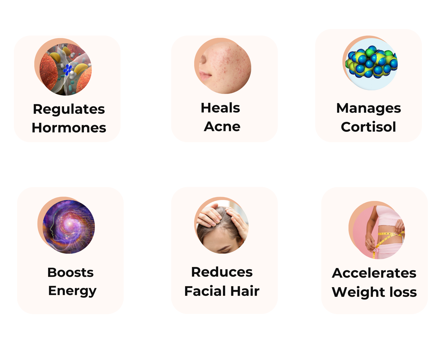 - Manages Weight – Helps address hormonal weight gain effectively.