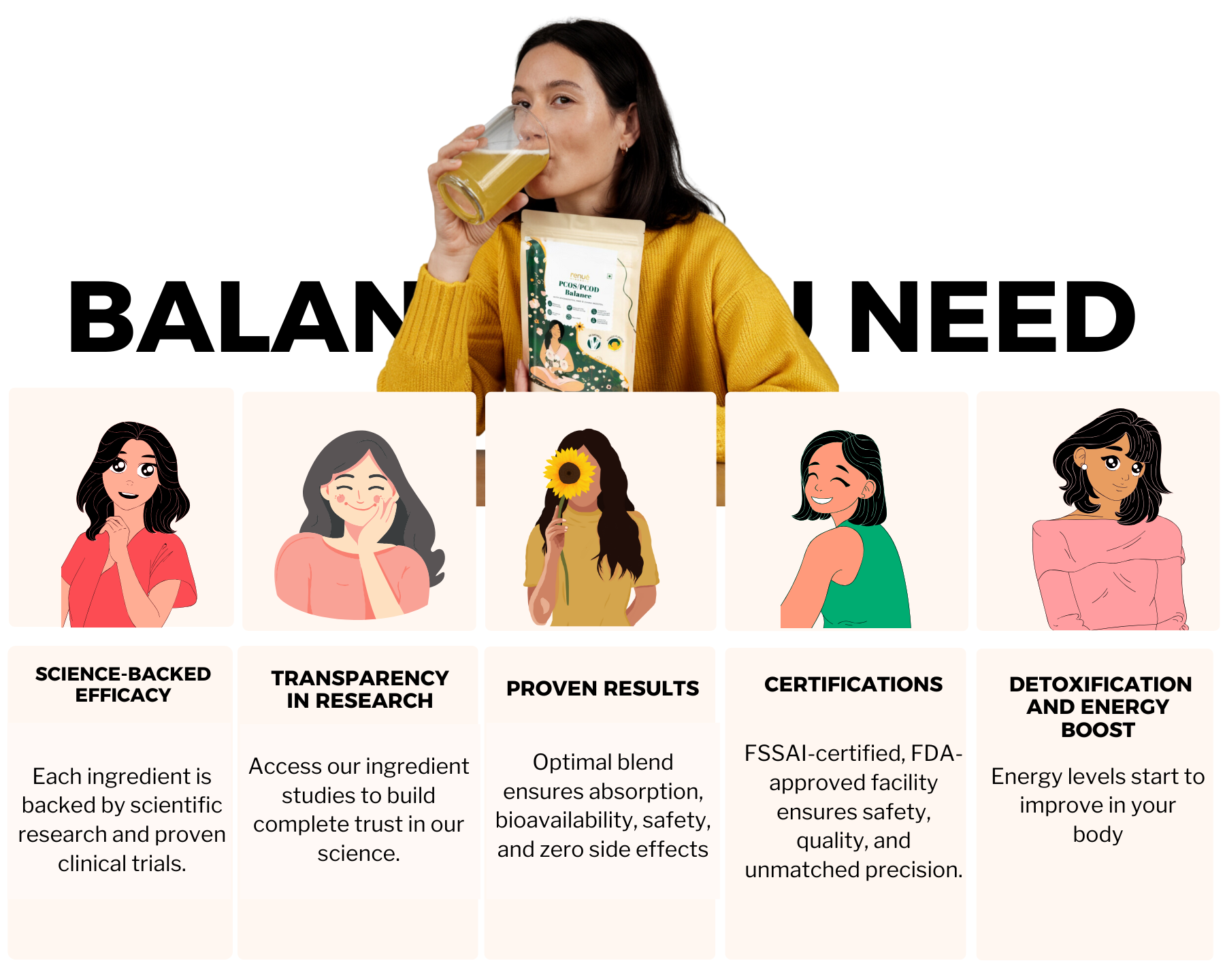 Struggling with PCOS / PCOD symptoms like facial hair, hormonal acne, abnormal weight gain & irregular cycles? This bundle balance your hormones & helps you reduce PCOS / PCOD symptoms in just 6 weeks*