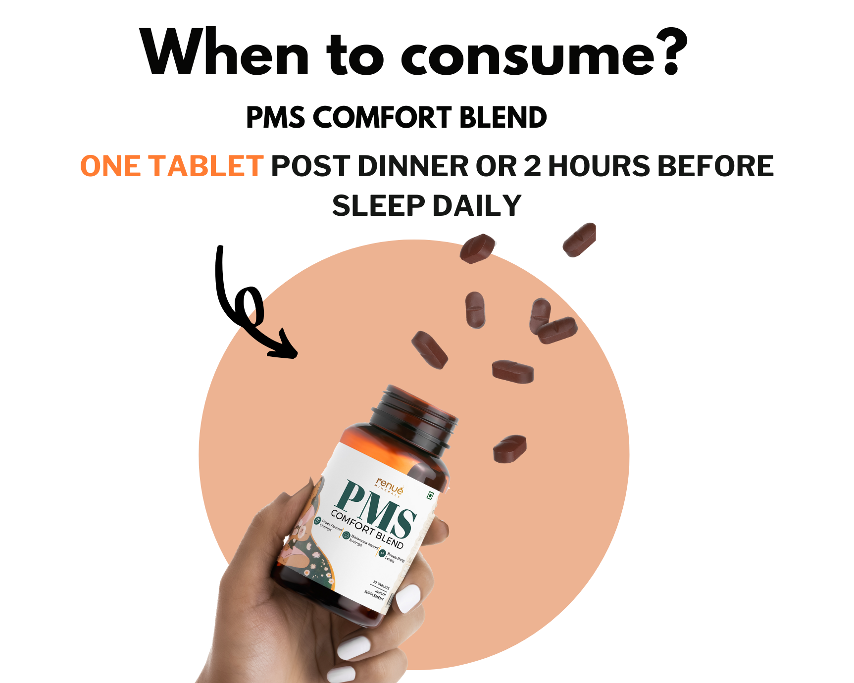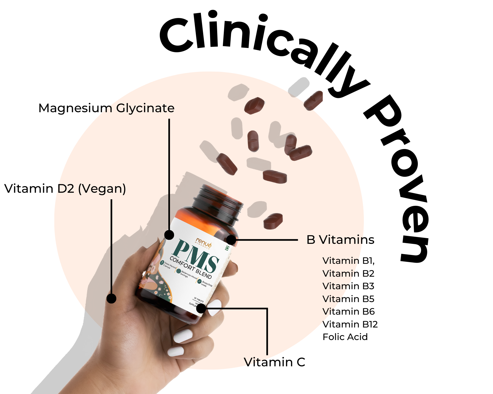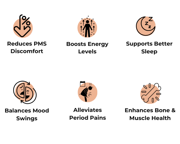 PMS Comfort Blend consists of clinically researched ingredients with essential vitamins and minerals that ease PMS symptoms, cramps, and boosts mood—an essential in every woman's wellness routine.
